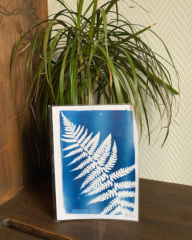 Différents tirages Cyanotypes à partir de mes photos argentiques ou de plantes.